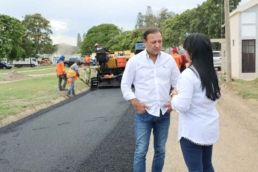 Martínez se presentó al lugar en horas de la tarde, en compañía de la vice alcaldesa Leonela Massiel Espinal y pudo percatarse personalmente del avance de dichos trabajos, los cuales concluirán con el remozamiento general del segundo más importante cementerio de la ciudad.
