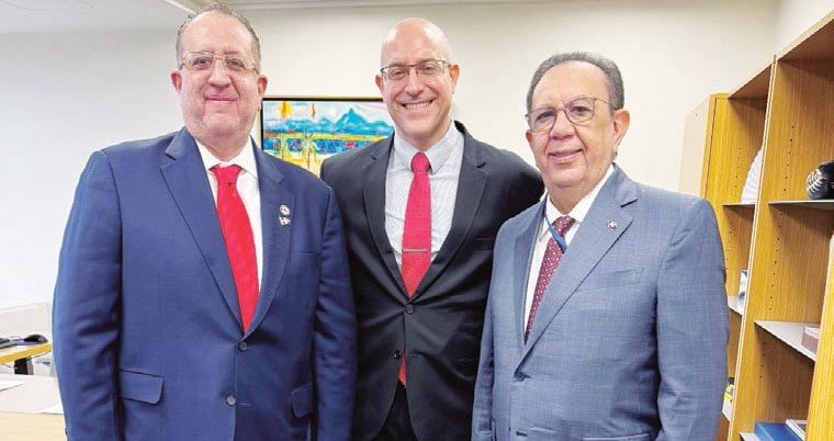 El gobernador del Banco Central, Héctor Valdez Albizu, y el ministro de Hacienda y Economía (MHE), Magín Díaz, sostuvieron un encuentro bilateral con el alto ejecutivo del organismo internacional André Roncaglia.