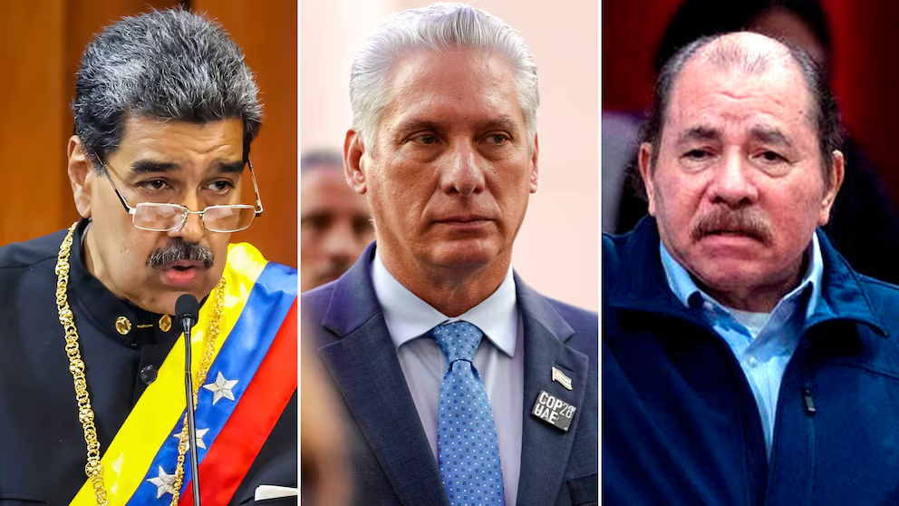 El ex dictador venezolano, Nicolás Maduro; el cubano, Miguel Díaz-Canel; y el nicaragüense, Daniel Ortega