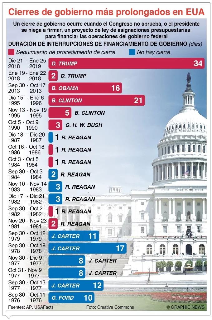 Washington (EFE).- Las propuestas de los demócratas y republicanos para encontrar un financiamiento provisional fracasaron nuevamente ayer, dejando vigente el cierre del Gobierno federal que afecta a más de 1,3 millones de trabajadores de distintas agencias estatales.