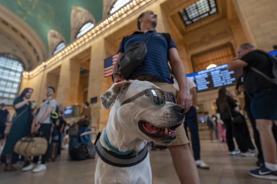 Fotografía de una persona con un perro en la estación Grand Central en Manhattan, Nueva York (Estados Unidos). EFE/ Ángel Colmenares