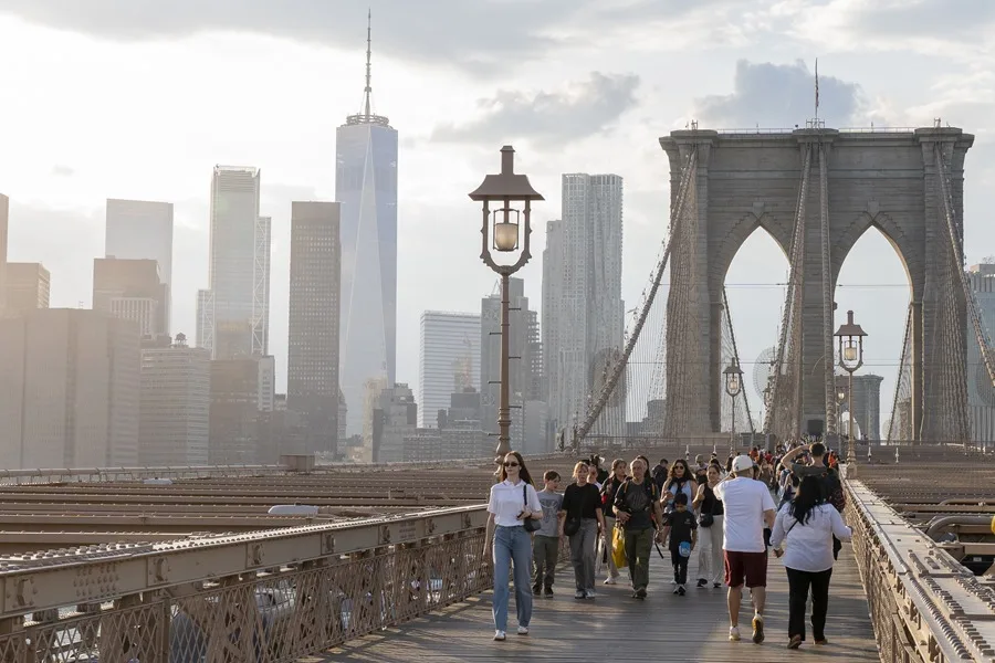 Fotografía de personas caminando por el puente Brooklyn, en Nueva York (EE.UU.). EFE/ Ángel Colmenares