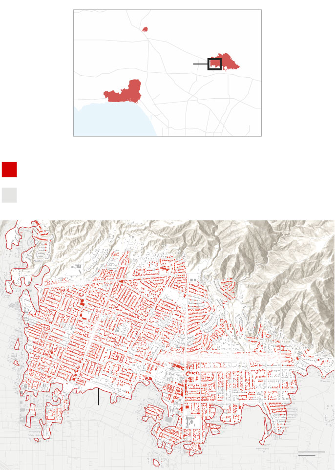 Fuentes: Análisis de daños con datos satelitales de Copernicus Sentinel-1 realizado por Corey Scher del Centro de Posgrado de CUNY y Jamon Van Den Hoek de la Universidad Estatal de Oregon; Laboratorio Nacional Oak Ridge; Oficina de Respuesta Geoespacial de FEMA USA Structures; Departamento de Silvicultura y Protección contra Incendios de California (perímetro del incendio) Gráfico: Renée Rigdon, CNN