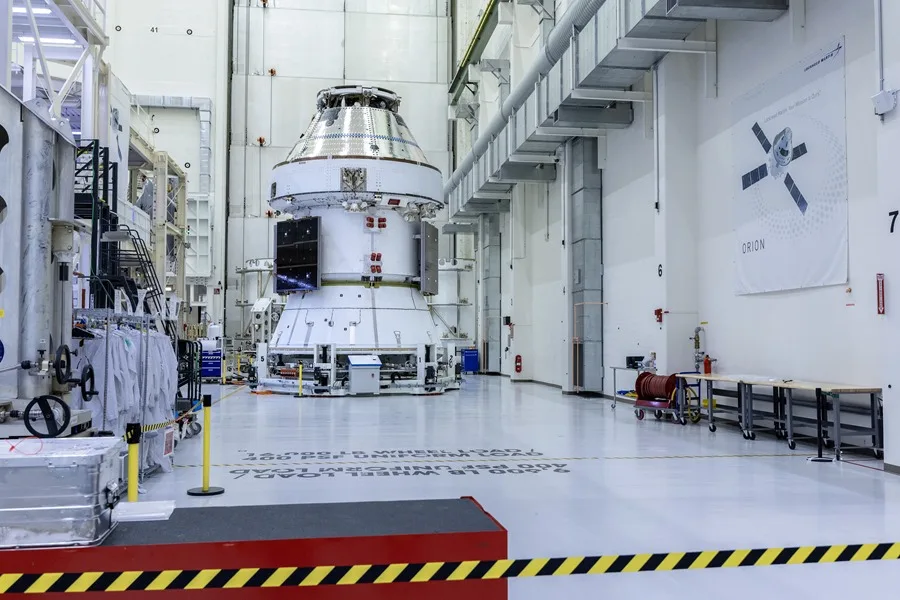La nave espacial Orión II de la NASA se ensambla en el Centro de Operaciones Neil Armstrong en el Centro Espacial Kennedy en Titusville. EFE/EPA/Cristóbal Herrera-Ulashkevich