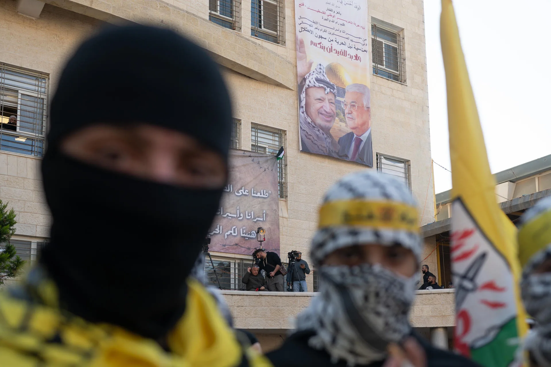 Miembros de Fatah, durante la espera por la liberación de los 110 palestinos que estaban en prisiones de Israel. EFE/Magda Gibelli