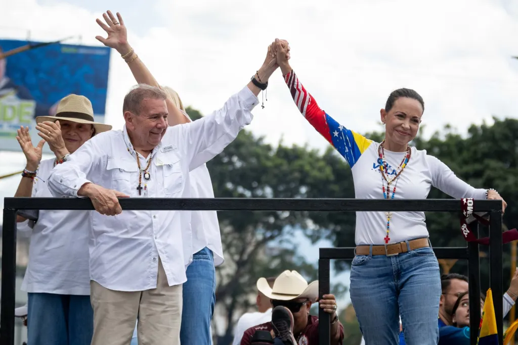 Fotografía de archivo del excandidato de la oposición en las elecciones a la Presidencia de Venezuela, Edmundo González Urrutia, junto a la líder María Corina Machado. EFE/Ronald Peña R.