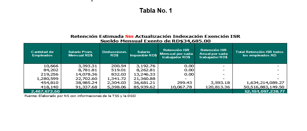 De acuerdo con los registros de la Tesorería de la Seguridad Social (TSS), alrededor de 800 mil asalariados están siendo afectados, ya que el monto exento de retención del ISR no se ha actualizado conforme a la inflación reconocida por el Banco Central.