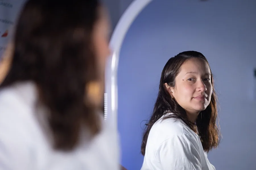 María Gómez, esposa del Gendarme argentino detenido en Venezuela, Nahuel Gallo, posa durante una entrevista con EFE, en Buenos Aires (Argentina). EFE/ Juan Ignacio Roncoroni