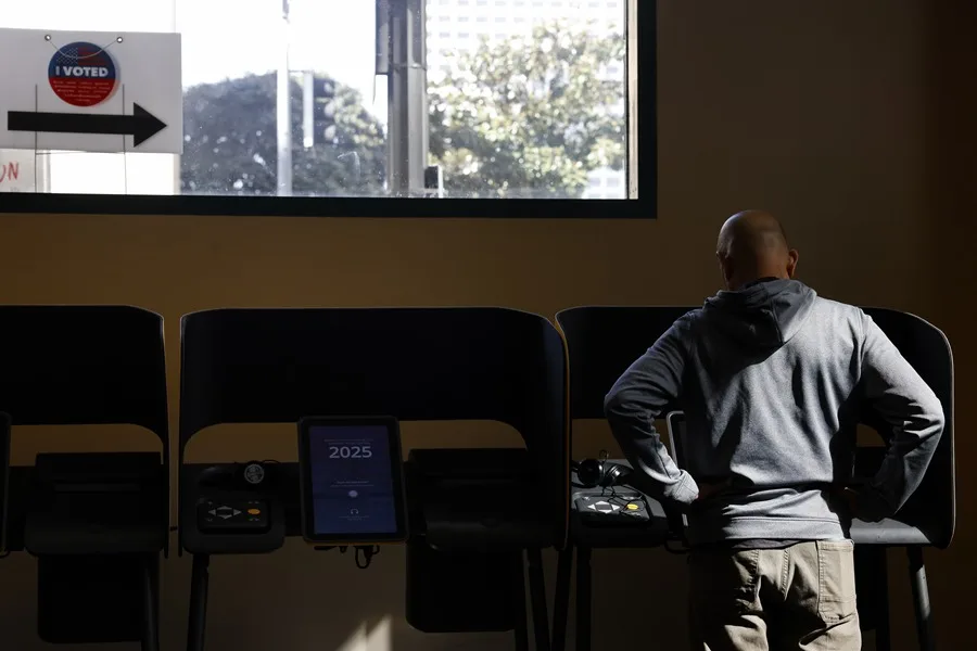 Fotografía del 4 de noviembre de 2025 de una persona votando en la Torre Millennium Biltmore, en Los Ángeles, California (EE.UU.). EFE/EPA/ Caroline Brehman