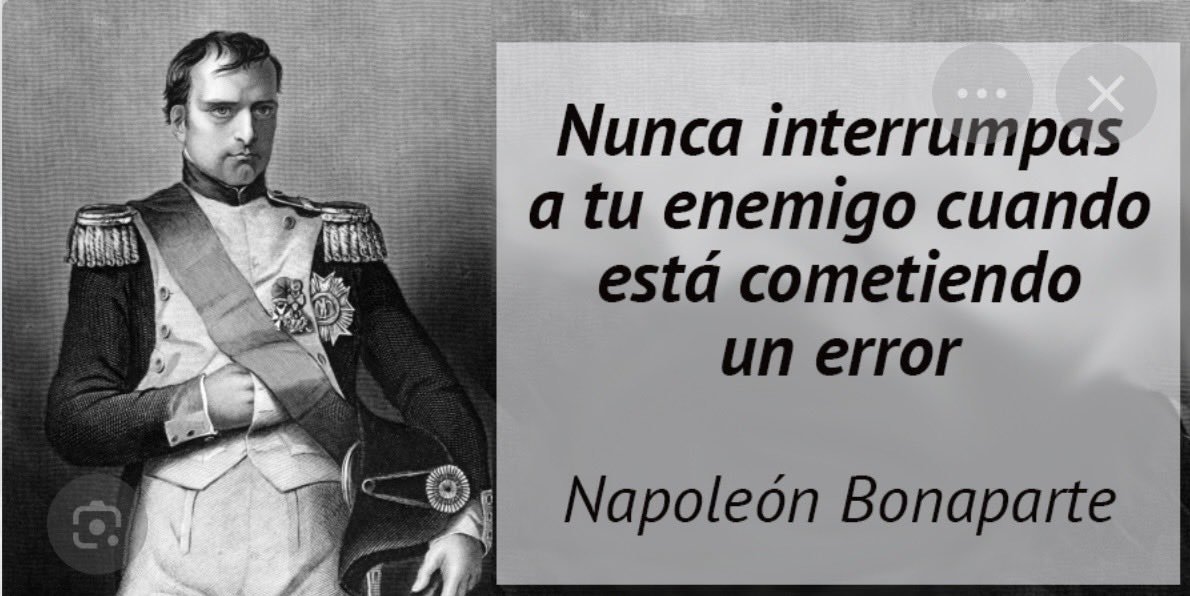 Esta célebre frase, atribuida frecuentemente a Napoleón Bonaparte, aconseja paciencia estratégica: no detener a un oponente cuando se equivoca, permitiendo que sus propios errores lo lleven al fracaso. Es un principio de estrategia, a menudo relacionado con la contención y la observación. Aunque asociada a la astucia militar de Napoleón, a veces se confunde con las enseñanzas de Sun Tzu en El Arte de la Guerra.