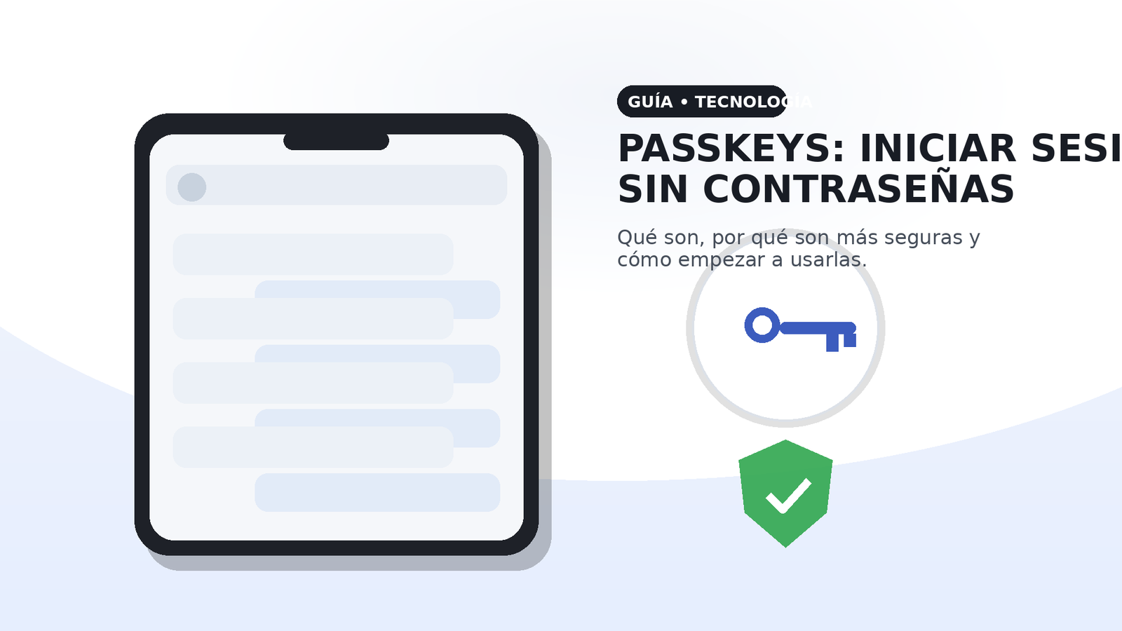 Una passkey es un método de acceso que se guarda en tu dispositivo (móvil o computadora) y que funciona como una “firma” segura. Cuando una app o sitio web te pide entrar, tu dispositivo confirma que eres tú con biometría o PIN y listo.