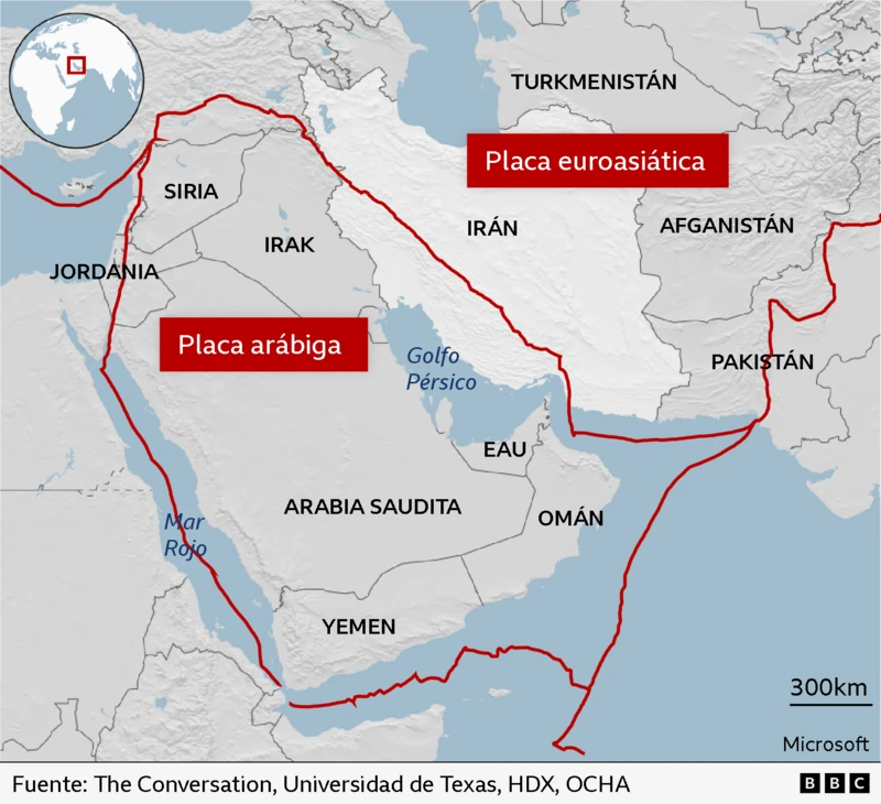 La región del golfo Pérsico está ubicada donde dos placas tectónicas se estrellan: la placa Arábiga en el sureste y la placa Eurásica hacia el este y norte.