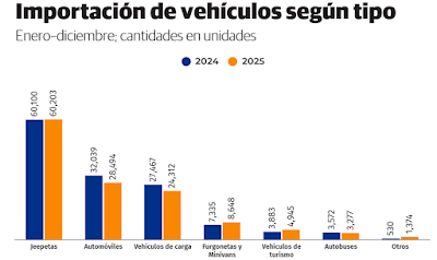 En contraste, las yipetas tuvieron una participación del 45.87 % en las importaciones con 60,203 unidades, que representaron una inversión de 1,087 millones de dólares versus 214.7 millones destinados para la compra de vehículos al cierre del 2025.