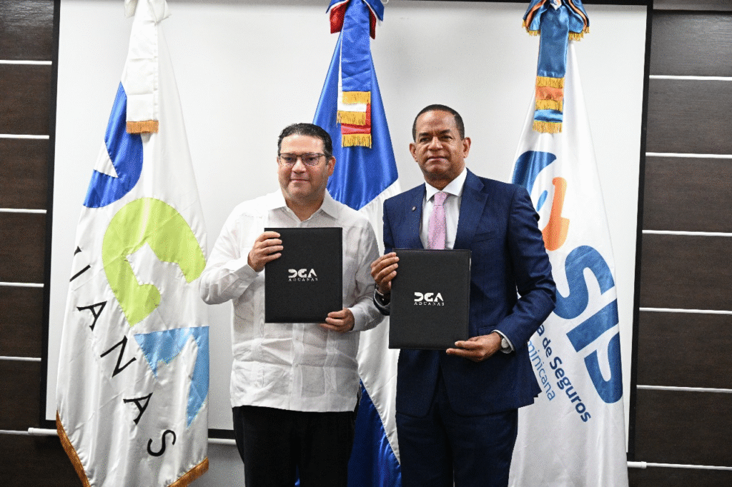 Santo Domingo, RD.- Con el propósito de fortalecer los procesos de supervisión, fiscalización y control de las fianzas aduanales en la República Dominicana, la Superintendencia de Seguros (SIS) y la Dirección General de Aduanas (DGA) firmaron un convenio de colaboración interinstitucional que permitirá optimizar recursos, dinamizar la economía y ampliar la protección de los derechos de los ciudadanos.