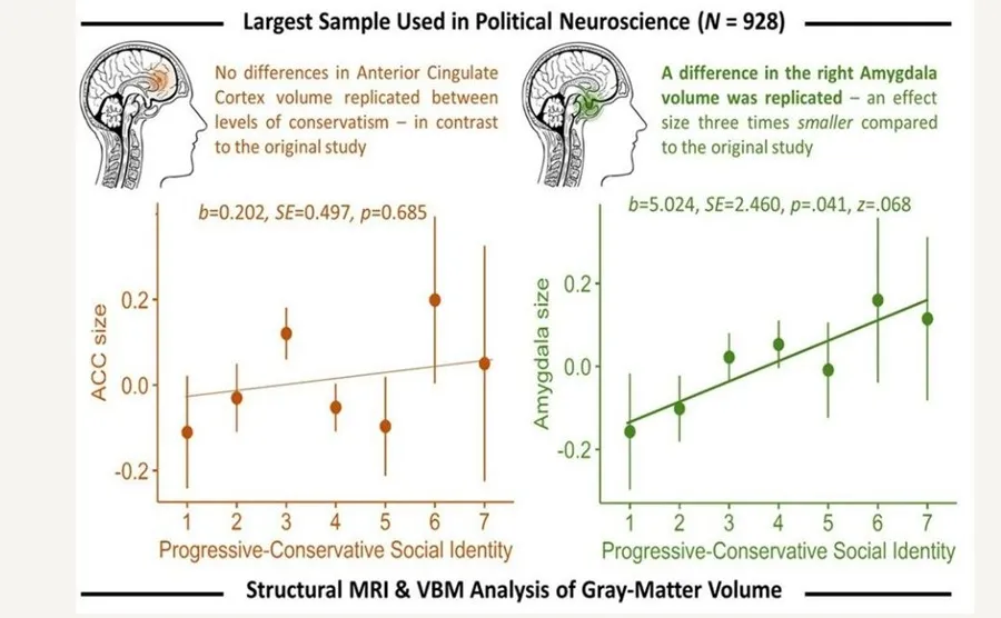 Como en el estudio original, el equipo encontró una asociación entre el conservadurismo y el volumen de materia gris en la amígdala, aunque tres veces más débil que en el estudio original.