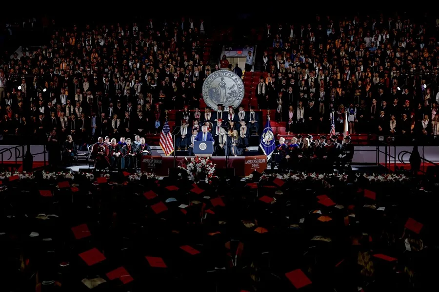 «Creemos en la libertad y la familia. En Dios y la Patria. Celebramos nuestra Constitución y veneramos nuestra Biblia y saludamos nuestra bandera», indicó Trump ante más de 30.000 graduados de la Universidad de Alabama, a lo que también dijo que hay que rendir honores a la Policía y no permitir que los hombres participen en competiciones de mujeres, una política central de su mandato orientada en excluir a las personas transgénero.
