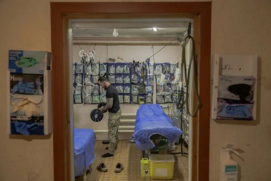 Los dos gestionaron juntos la pequeña cirugía y atendieron al soldado herido con una rutina minuciosamente ensayada a lo largo de años de trabajar hombro a hombro desde la invasión rusa, de 2022.