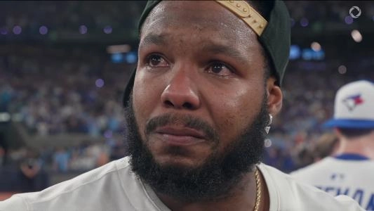 Vlad secándose las lágrimas en el dugout del Rogers Centre tras el último y decepcionante out, cuando su equipo estuvo a punto de conseguir su primer título de Serie Mundial desde 1993.